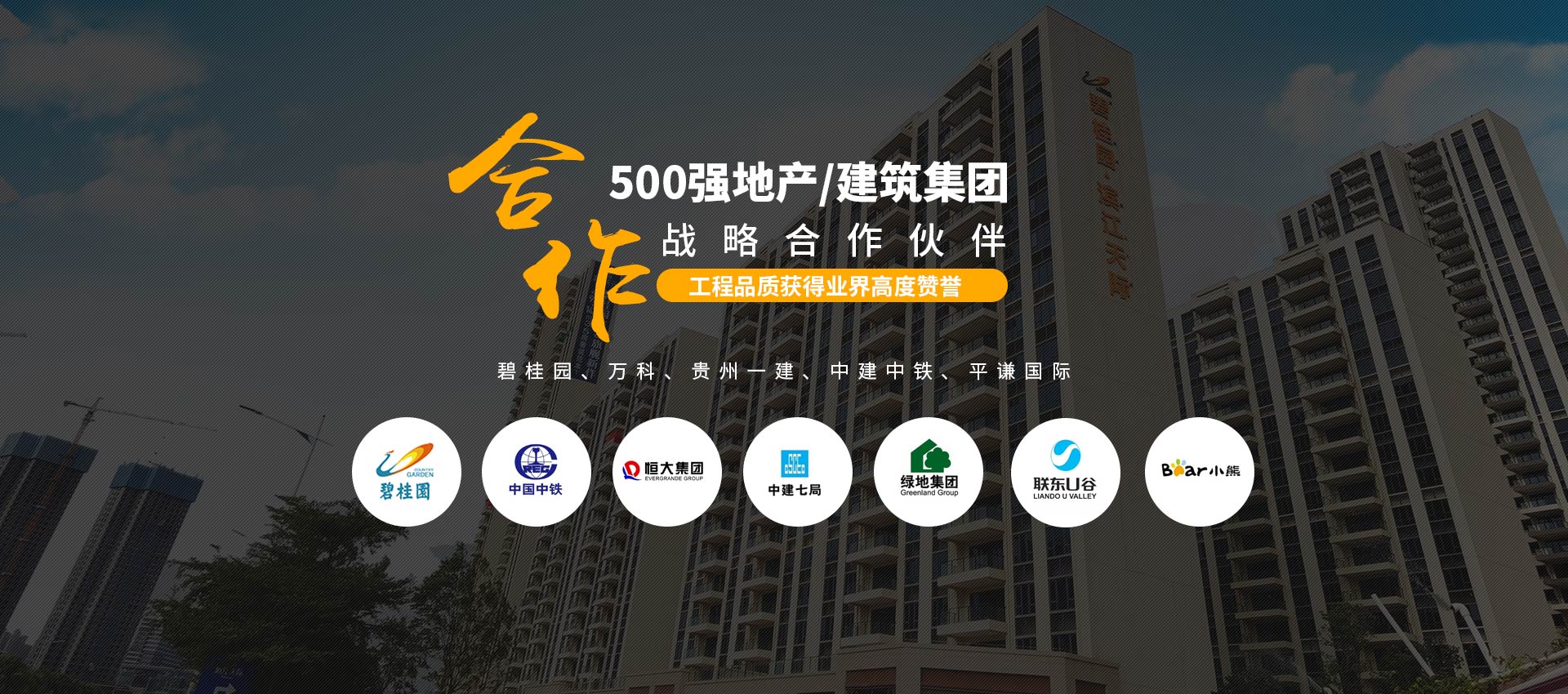 500強(qiáng)指定合作:與“碧桂園、萬科、貴州一建、中建中鐵、平謙國際、恒大、雅居樂”等地產(chǎn)/建筑集團(tuán)建立長期的戰(zhàn)略合作關(guān)系。